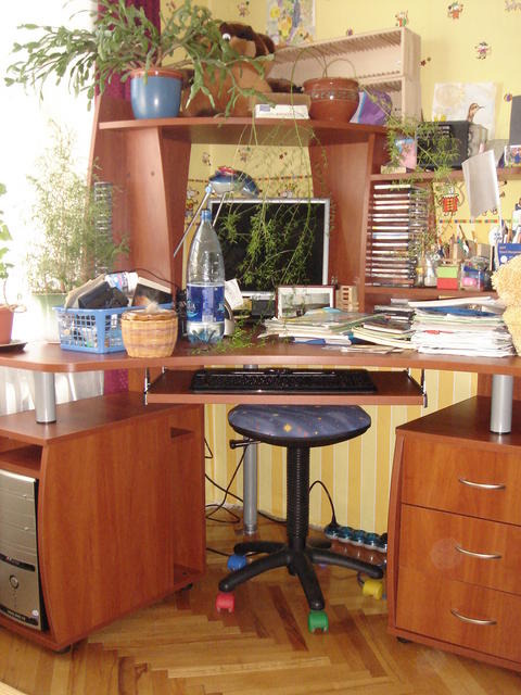 Заказывали в Аквилоне, а есть и в Мебель сити их отдел. Делают в Москве. А стул купили "компьютерный", по высоте регулируется, спинка гибкая, подлокотники. Его покупали где-то в районе Ланского шоссе. Там центр компьют. мебели.