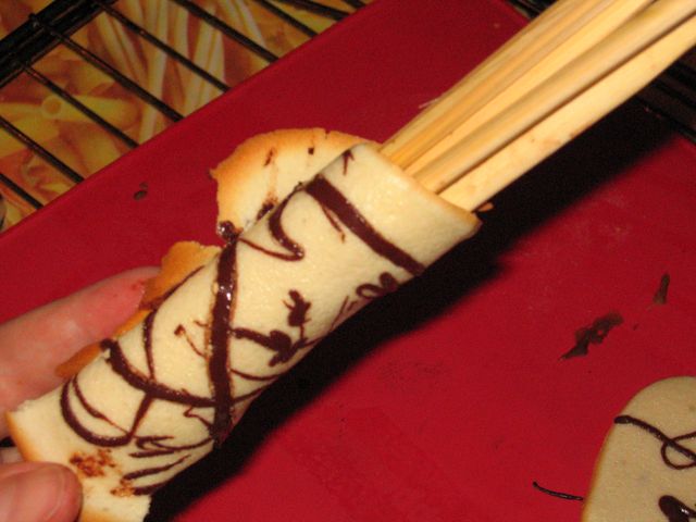 но если за краешек брать и быстро кидать на деревянную ручку от ложки (я использовала палочки для суши в количестве 4 штук), то ничего. Я пыталась фотку сделать, но она не очень удачная... |