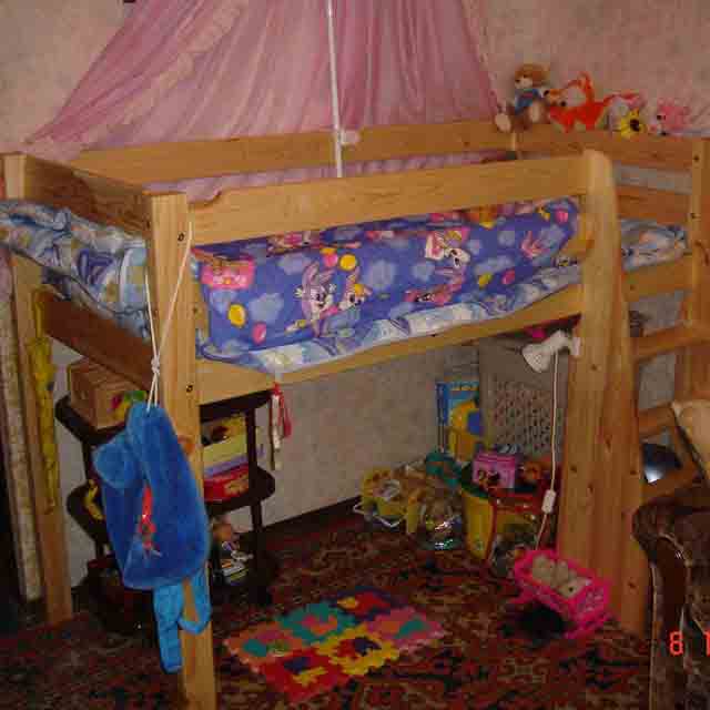 Мы такую купили летом, без подкроватной мебели за 3500, на Заставской 11/2. Доче 3 года, залезать не боится, так как высота оптимальная для такого возраста. Лестница действительно самая удобная из всех аналогичных вариантов. Размеры 1950*900*1170, но мы сами уменьшили длину и ширину на 30 см. В ближайшее время организуем под кроватью домик принцессы!