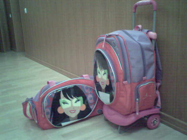 А я купила обоим дочерям ранцы на колесиках за границей. Там все дети их возят, а не носят.Хотя эта функция тоже предусмотрена. Выкладываю фотки рюкзака и спортивной сумки старшей дочери. Качество хромает, потому как фотоаппарат подключать к компу долго, фотографирую мобильником.