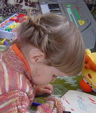 Мы стали ходить с косичками примерно с 1,10, а раньше тоже все время снимали и резиночки и заколочки. Если не дает заплести косички, то на бегу завязываю хвостик. А иногда сама просит косички заплести или "хвостик как у рыженькой лисички" На сложные прически терпения не хватает. А вот моей подруге разрешила заплести себя.