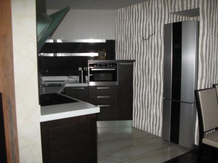 ниша была задумана.. там по проету оригинальному выступ на стене(вент канал),так что просто добавили стенку(справа от холодильника.)стол- дерево, сделан под заказ,..