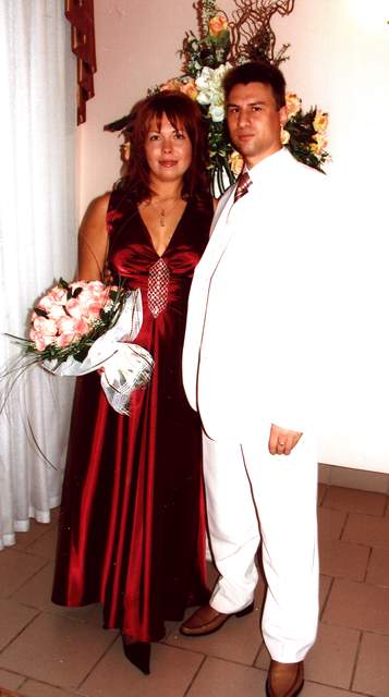 !!! Ужас как давно я здесь не появлялась ! Новостей море. Съездили мы летом на дачу с Сашуней, вытерпела я там ровно месяц и под предлогом переоформления карты я сбежала . Скучно было, аж жуть ! А по возвращении в город я обнаружила, что не работает компьютер и вот только сегодня (вот радость-то) я прорвалась в интернет ! Вышла я на работу, сначала с большим энтузиазмом, а потом не раз вспомнила, как счастливо мне жилось весь год, как я высыпалась, как много гуляла с Сашей, а теперь вставать нужно ни свет ни заря, тащиться через весь город на работу. Зато немного приободряет наличие зарплаты. А еще 15 сентября у меня была свадьба . Скромная, без излишеств, но я тем не менее счастлива по-настоящему. А у Сашули теперь есть папа, тем более, что мы оформили его отцовство и Сашуля поменяла фамилию. А вот я осталась при своей, девичьей (уж больно не хотелось заморачиваться с заменой документов. Вот, поделилась с вами своей радостью . Переехали мы в Невский район и компа там у меня пока нет, так что появляться буду редко, когда буду приезжать в гости к маме. Вот похвастаюсь немного (фото правда не фонтан по качеству, поскольку отсканированы): это мы с Сережей на нашей свадьбе и наша Сашуля с бабушкой (моей мамой) |