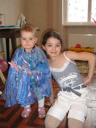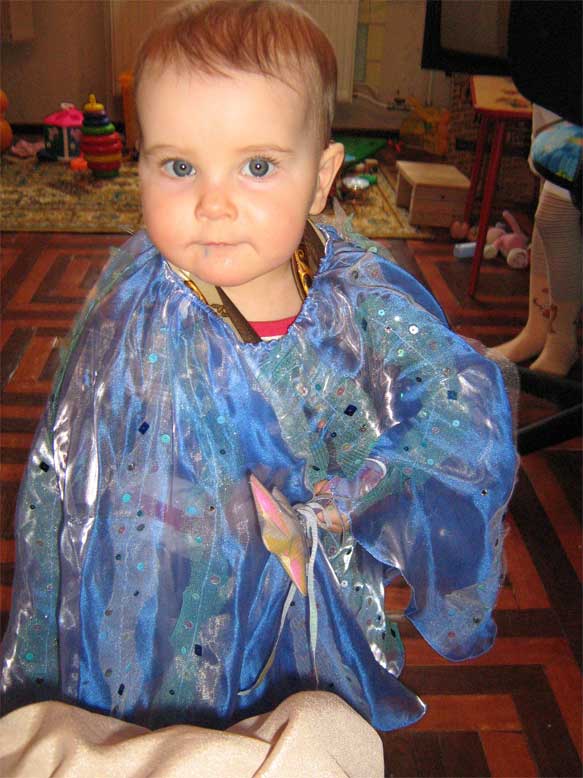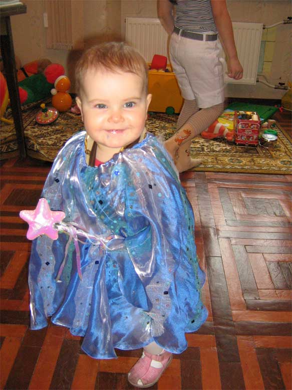 Это еще порция фотографий, они с Соней танцуют. Соня ее феей нарядила. Синее на губе - фломастер