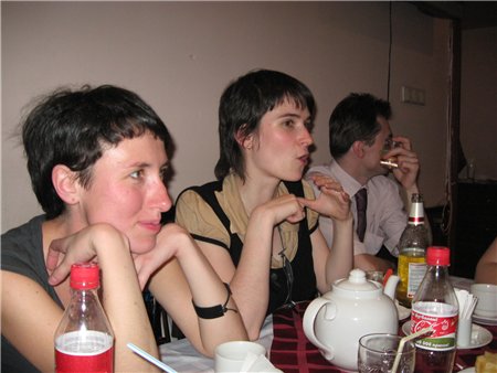 1. Юля З 2. Ирина Rica вещает и все время губы трубочкой получались на фотках ![]() 3. Иринин муж прячется, пьет пиво с иероглифами и делает вид, что так, мимо проходил ![]() |