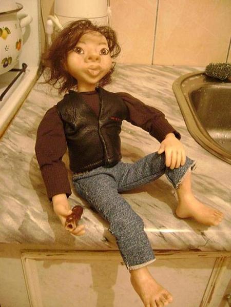 Кстати, придумала новый способ приклеивания волос, но может он и не новый. Отрезала от капронок кусок и на него нашивала волосы вытягивая петли ( какая нужна длина волос), потом петли разрезала и отрезала тот кусочек капрона на который нашила, приклеивала на супеклей к голове. Волосы в гостинке покупала, трессов тогда не было и купила волосы как моточек ниток, но не знала как прклетить, машинки чтоб настрочить трессы у меня нет, и придумала нашить на капрон. Для удобства капрон отрезала кольцом и надела на коленку, так удобней нашивать. Может кому пригодится. Если непонятно, спрашивайте, попробую еще раз донести свою мысль
