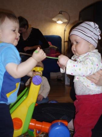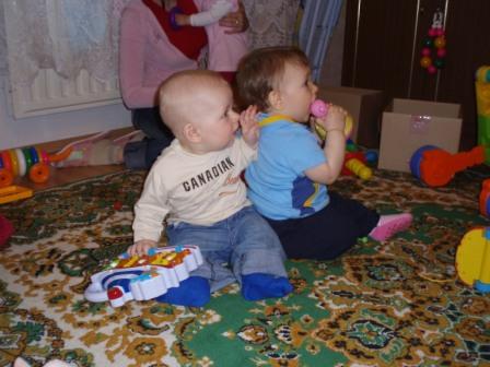 Хандра у меня прошла ....Дианочка так заразительно смеялась и хохотала. Молодец - подняла настроение. ![]() А Илюша САМ прошел через всю комнату!!! ![]() |