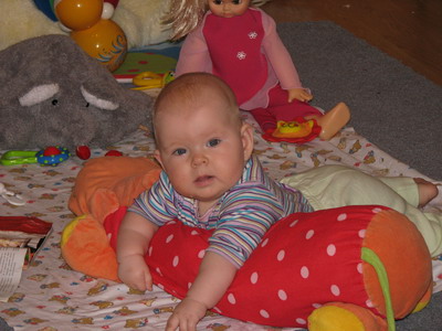 Ух, еле Женечку сейчас спать уложила. Видно, что спать хочет, а как на пузо перевернется, начинает кудато ползти... Ну и в рев, конечно. Сейчас спят мои красавицы - ОБЕ! Цитата: