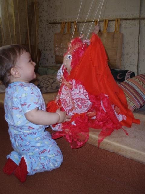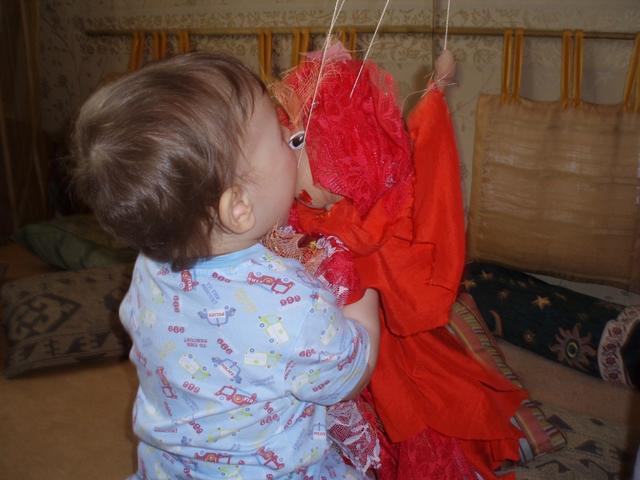И ничего он куклу не мучает, он ее целует. Не мальчик а ангел. Мой муж ожидал увидеть открученные разетки и развивающиеся провода( шутка). Так что еще ждем в гости, всегда рады. Я готова поменяться разными игрухами!!