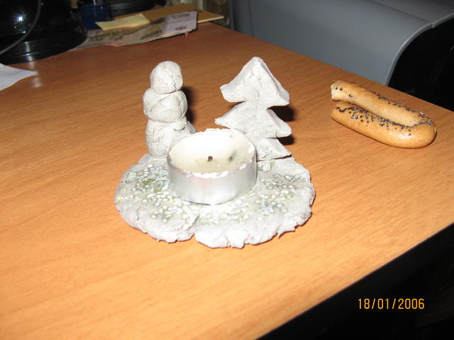 Процесс тоже очень важен и одно доугому совсем не протеворечит.Продолжаем тему подарков на Новый год. Многие любят дарить на этот праздник СВЕЧИ. Мы подумали, а почему бы сворганить что-то на эту тему. Результат вам на суд. 1. подсвечник из затвердивающего пластилина . Металик ( блестит). Горящую свечу выдерживает-проверили. 2. Детский воск для поделок. Вырезаем формочкой и накладываем одну часть на другую. Легко и симпатично. |