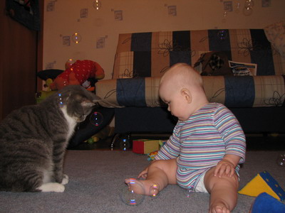 короче, я сегодня обнаружила, что детское питание из банки, если оно не слишком густое, можно просто ПИТЬ! никакой возни с ложкой, и Барику страшно нравиццо. и вроде не я его кормлю, а только банку держу, а он сам к ней прикладывается. |