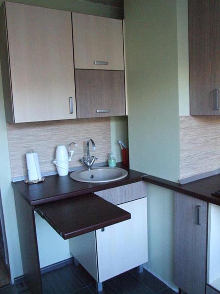 Высота столешницы рождалась из желания иметь кусочек выдвигающейся столешницы у мойки над ПММ. Проектировалась столешница высотой 91см, а на деле, когда все ножки выровнили, получилась 93