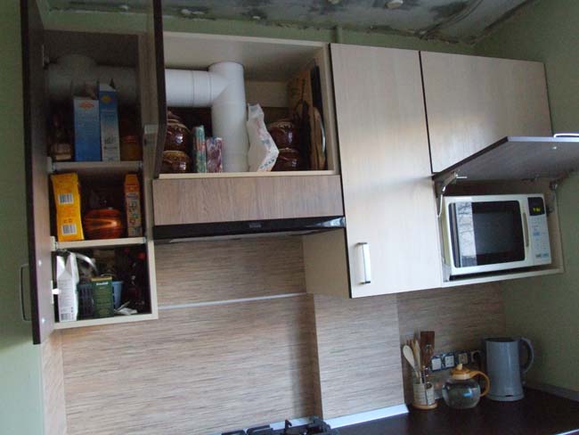 Глубина верхних шкафчиков над варочной получилась 40см из-за микроволновки