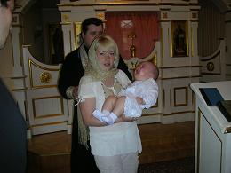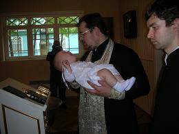 фотки с наших крестин.увидив батюшку Ники ему поулыбался,посмеялся над ним,а как только тот начал молитвы читать Ники начал рыдать.в итоге с рук кресной деть перешел на руки ко мне(40 мин на моих руках).а когда Ники ополоснули водой из этого тазика то ор стоял такой что даже батюшка посочувствовал,но не долго.взял Кита и ушел с ним к алтарю.Ники вцепился к ручонками в крест на его шее,еле отобрали
