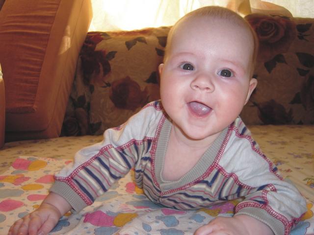 А зубки у кого-нибудь уже появились? А то моя Алисочка последнее время какая то беспокойная стала по ночам, говорят что это должно быть зубки режутся, только я посмотрела, да вроде нету пока еще. |
