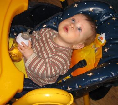 А у нас новое умение - Лиза встала на ножки За дезодорантом на кресле потянулась, и опа - так легко без напрягов встала, как буд-то всегда это делала. Хитрюга, наверное уже давно умела, но скрывала