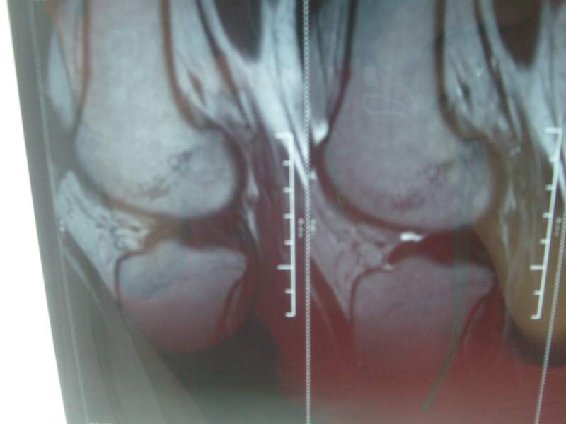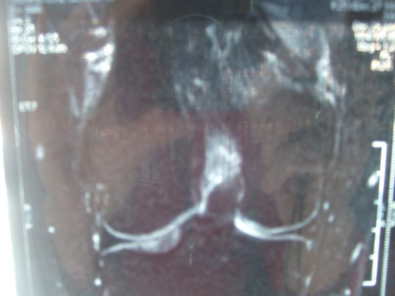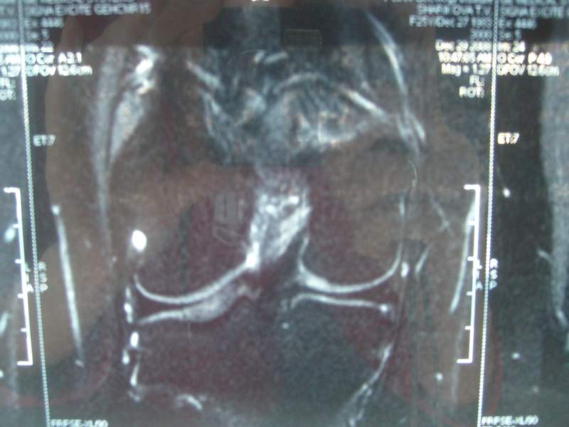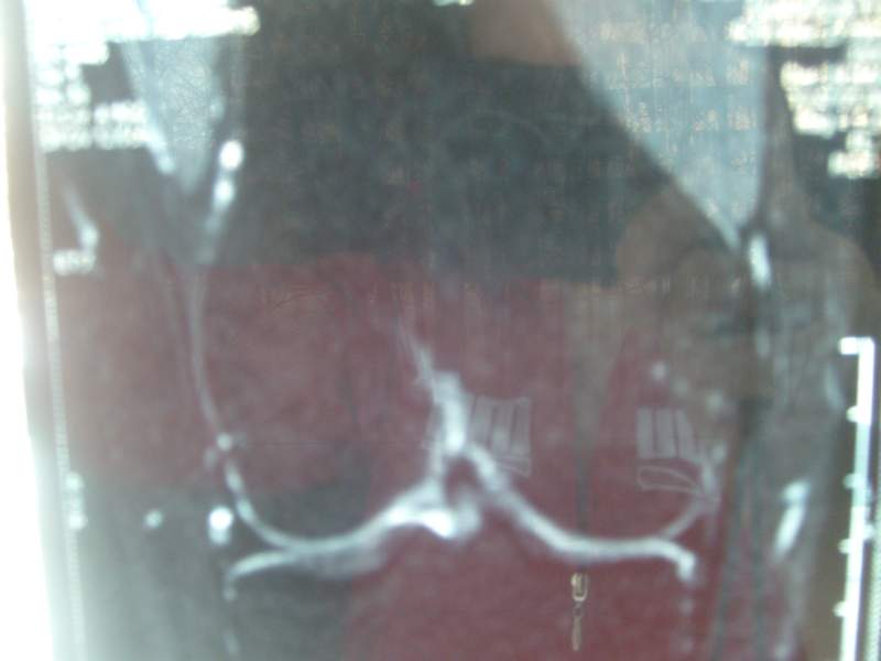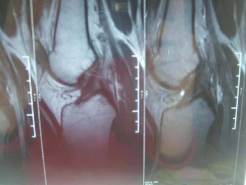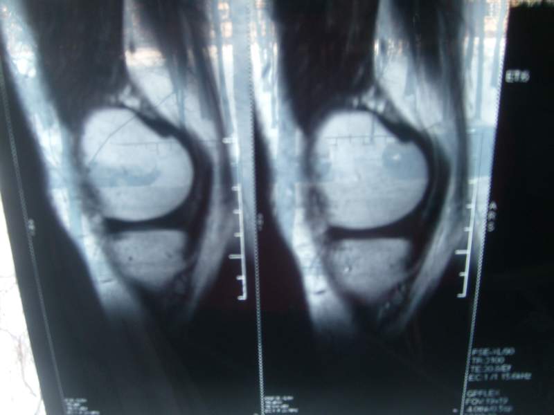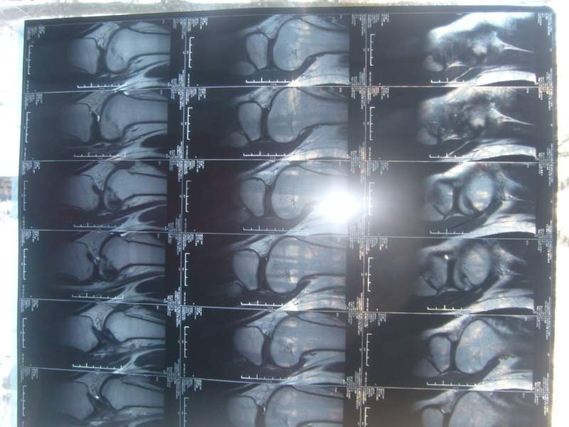 Не знаю, о каком феморо-пателлярном артрозе или хондромаляции могла идти речь - надколенник на срезы и не попал почти нигде. Что видно - дисковидные мениски, вероятен разрыв ПКС, пателла альта (наверное). Хрящ на надколеннике виден только куском - но он достаточно толстый. Мениски с разрывами по Столлеру 1-2 степени. Возможно и 3 (ее нужно оперировать), но на снимках не видно - не в фокусе. В задних рогах менисков разрыв на 80-90% имеется На мыщелке бедренной кости есть участок хондромаляции 1-2 ст. Думаю, что с ферматроном можно не связываться. Лучше действительно сходить к артроскописту. Пока вопросов больше чем ответов. |