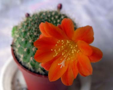 Вчера ещё был бутоном, а сегодня распустился!! Интересный факт - моя дочь этот кактус по утрам ЦЕЛОВАЛА (ТТТ без заноз). Во даёт! Полюбуйтесь как хорош!!! |