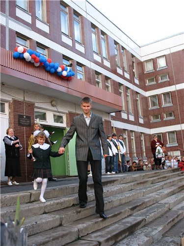 Мы в прошлом году звонили - 1 сентября и на последнем звонке. Так 1 сентября я успела только видео снять, фотографий нет. А на последний звонок пришлось с младшим ребенком идти, он замечательно сидел на коленях всю торж. часть, а к самому звонку стал скандалить. Пришлось выйти, только от выхода что-то пыталась сфотографировать. Теперь есть фотография, где дочку одиннадцатиклассник на плечо сажает ![]() ![]() |