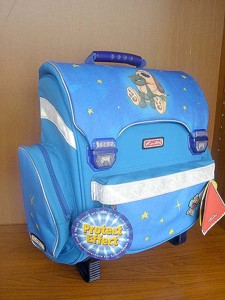 Купила чудесный ранец немецкий фирмы Hama, с наполнением (мешок для обуви, 2 пенала, кошелек, дождевик на ранец, держалка для мобильника). Дизайн - синий с ярко-красными боковинами, с гоночной машиной, и черно-белым шахматным карманом. Выглядит супер (у меня зеркальный фотик, выложить фотку не могу