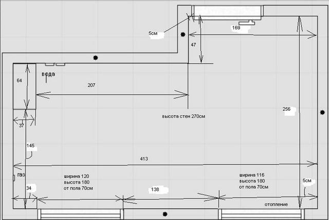 Ну вот это впринципе то что я и хочу, только плиту чуть поближе сюда, чтоб не друг на против друга были, проблема то в том и состоит что фановую(если она так называется) трубу трудно вести будет. Мастер предложил фановую трубу спрятать под полом(но что то я сомневаюсь, тем более что говорят нужен перепад, а если протечка или засор, это пол вскрывать чтоли?(