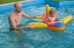 Басссик на даче это супер, не передать словами... Теперь я уверена, что Викуля будет как минимум олимпийская чемпионка по прыжкам в воду