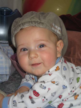 Красавчик. Глаза обалденные... Хитрющиееее. Вот лежит он лежит на пузе, на маму хитренько смотрит, а как возьмёт, кааак всанет... и побежит на кухню варенье трескать