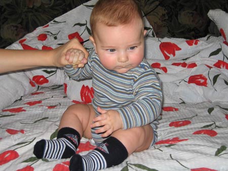 Нам то же самое Лебедев сказал. И не несколько минут, а пол часа-час тренировок в день. Он таким образом держит мышцы спины, живота, ягодиц, бёдер в тонусе и пресс развивается. Это в дополнение к упражнению, которое Оля описала: лицом от себя... прижимать предплечьями за живот к себе - чтоб спину тренировал. Созреть-то он конечно созреет когда-нибудь... а мы то на что? Учить жеж должны?!
