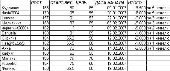 ![]() Тута я... Не успеваю за всеми отследить. Вот мой вариант таблички, если кого-то не сосчитала, не учла - отпишитесь в личку ,пожалуйста, вечером исправлю. |