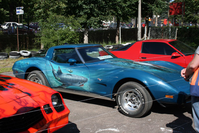 Эту машину с акулами видела в городе, так смешно, маленькая машина и за рулем огромный бугай.