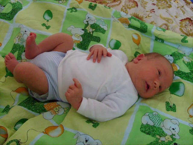 Девочки всем привет!!!! Давно ничего не писала , но иногда почитываю что успею)) Владюшенька растет , щечки наели)) Тоже помучились с животом, педиатр сказала пить САБ СИМПЛЕКС , но я вас читаю , вроде никто его не пьет, что же лучше и понатуральней????? Не могу сказать что особо помагает, не поняла . Сыночек очень старательный , без крика и плача пытается пукать и какать , только очень кряхтит и хрюкает))))) Обычно добивается результата)))) Но два раза уже все же делали трубочку(( . Первые две недели после роддома очень старалась соблюдать диету , чуть не померла от желаний что то сьесть запретное!! мучила мучила себя и плюнула на это дело!!! Потихоньку стала вводить новые прдукты. В итоге сейчас ем почти ВСЕ!!!!!!! Черешню , абрикосики, персики и так далее . Кушаю салат из свежих овощей ( помидорка огурец зелени много) Аллергии не высыпало ( тьфу тьфу тьфу) !!!! Ночью спит хорошо , только на покушать просыпемся)) Заметила , что кампот из сухофруктов очень спасобствует приливу молока, как попью так прям заливает! Когда муж дома гуляем вместе в коляске , когда его нет спим весь день на балконе , вообще на воздухе лучше спит чем дома в кроватке. Вот такие мы были и вот какие сейчас )))))))