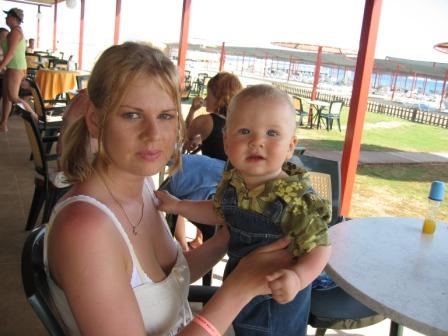 Привет всем! Вот мы и вернулись. Отдохнули класно. В отели мой был самый маленький, но детей от года до двух тьма. Несколько папашек и мамашек зависливо сообщили, что своих годовастиков оставили дома, побоялись брать с собой. По принуждению перешли мы на взрослую пищу, давала я ему супы тамошнего производства, мясо погрысть, йогурт, хлопья с молоком, мороженое и даже чипсы.