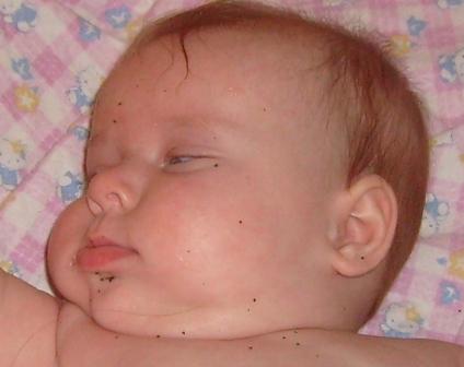 На фото Алёнка такая бОльшенькая уже, а мне всё кажется, что она должна быть такая малипуся. Фотка после сушечно-макового пиршества - просто бест.