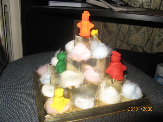 1. кура. подготовка к пасхе. просто пластилин. курица- объемная формочка. 2. лиса. чечевица. 3. пингвины. пластилин. коробка от конфет. ватка. |