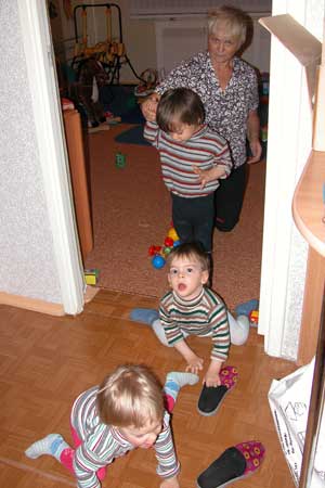 Вчера была у тройняшек. Отвезла им питание, влажные салфетки и денежку - 12 500. Лена была ОЧЕНЬ рада нашей помощи. Она даже прослезилась и сказала...."Таня, ты даже представить себе не можешь, насколько во время ты привезла мне денежку, питание и салфетки". В прошлый четверг только за один день у нее ушло 3 200 на лечение деток и они с Олегом ломали голову, где взять деньги на продолжение лечения.... Лена просила передать всем ОГРОМНУЮ ПРЕОГРОМНУЮ БЛАГОДАРНОСТЬ. За то, что мы не забываем их и продолжаем помогать. И детки тоже радуют. Коленька ходит держась за одну ручку, ползать уже не хочет. Правда шатает его (вистибулярный аппарат не в порядке), а так бы уже пошел сам. Анютка очень быстро и уверенно ползает. Толик тоже старается не отстать от сестренки. Благодаря очистителю и увлажнителям воздуха, детки не болеют! Дай бог, чтобы так продолжалось дальше! Не будут болеть - развитие пойдет быстрее! а теперь немножко фоток.