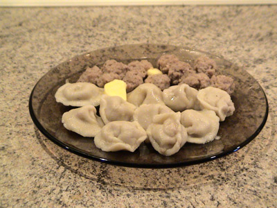 ну вот, продолжим, я все упражняюсь с пельменями, сделала вывод, если замешивать тесто только на яйце, то получается более эластичным. если раскатывать потоньше(в пленке пищевой это удобно), а потом вырезать небольшие кружочки(я использую коньячную рюмочку, 4 см в диаметре), то можно вполне приличные пельмешки слепить, кстати, они прекрасно замораживаются впрок!
