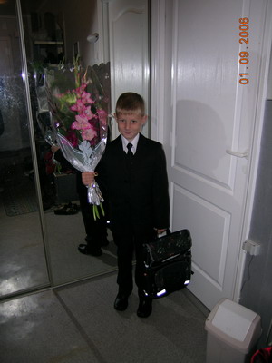 У меня тоже сын первоклассник, хотя ему еще нет и 5 лет. В америке школа начинается в этом возрасте. И форма одежды тут совсем не парадная. Прикреплю 2 фото - у входа в класс и в классе в первый учебный день. Последний раз редактировалось Ulitochka, 21-05-2007 в 09:35. |