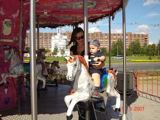 А мы тоже на этих каруселях катаемся иногда.Только Яську одного не посадишь, обязательно начнет слезать,все проверять,откручивать и т.д. и т.п. Очень хочется его посадить на самолетик,но боюсь,что через мин. он начнет от туда вылезать (причем на ходу).