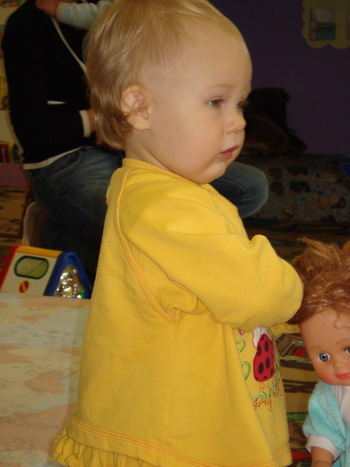 Очень дружный коллективчик! Детки учатся играть вместе, мамочки делятся всякими секретиками и простоо умиляются малышам. Олежек у нас наблюдатель- а дома- по прежнему читатель( теперь еще и забавно болтает при этом- вроде как читает-умора!!) , Теперь еще в машинки в гараже играем, вот купим краски , начинаем рисовать . Вчера на Монтессори начал интересоваться красками- а у нас уже все загоовлено, будем на стене делать место для рисования, и доску пора укрепить. Вчера на занятиях так было весело- на музыке знакомились с разными овощами и варили суп ( а детки грызли муляжи овощей) все под песенки, а на занятиях ловили рыбку( в водной среде), разбирали пшено и песок. Вообще бурундучок он!! И играли в замочки. Мамы устали ОЧЕНЬ!!![]() |
