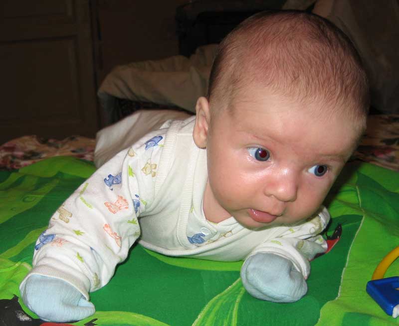 нам сказали что голову хорошо держим.. любим мы полетать и поползать