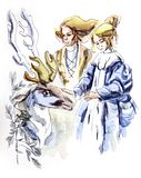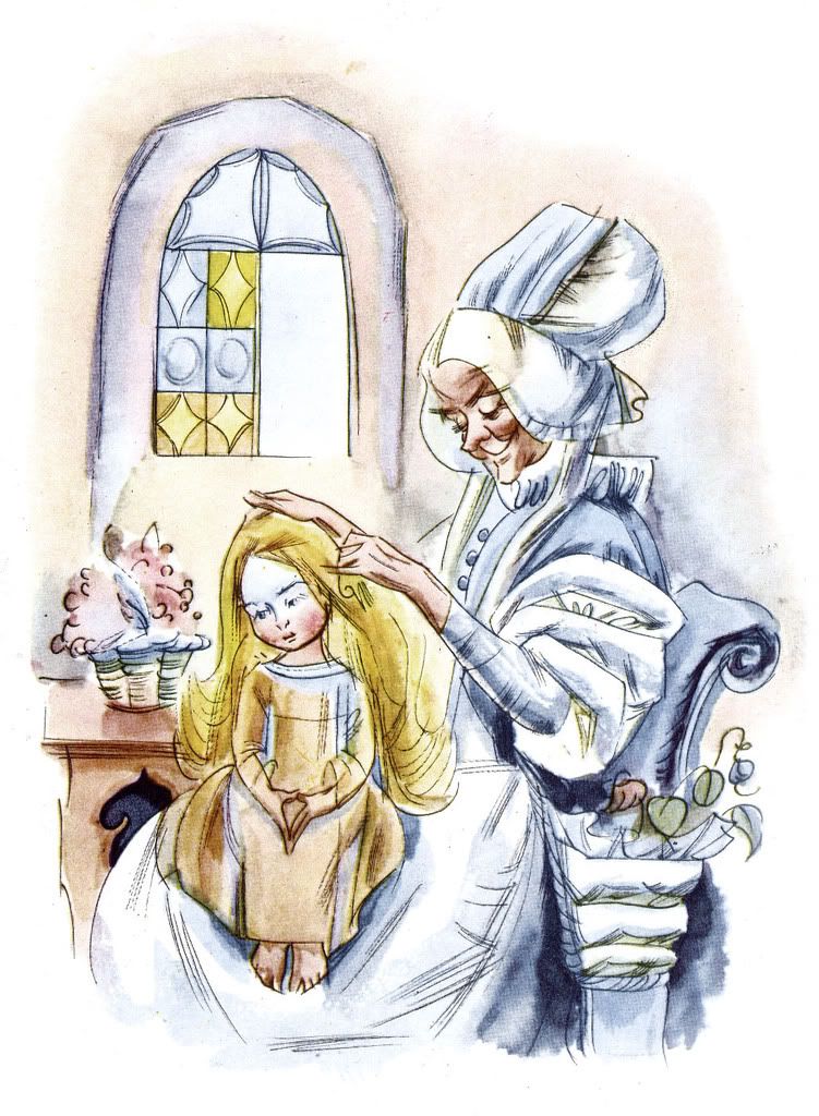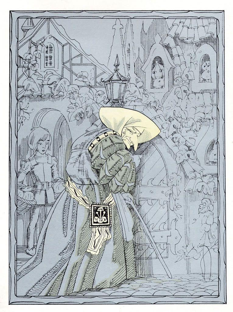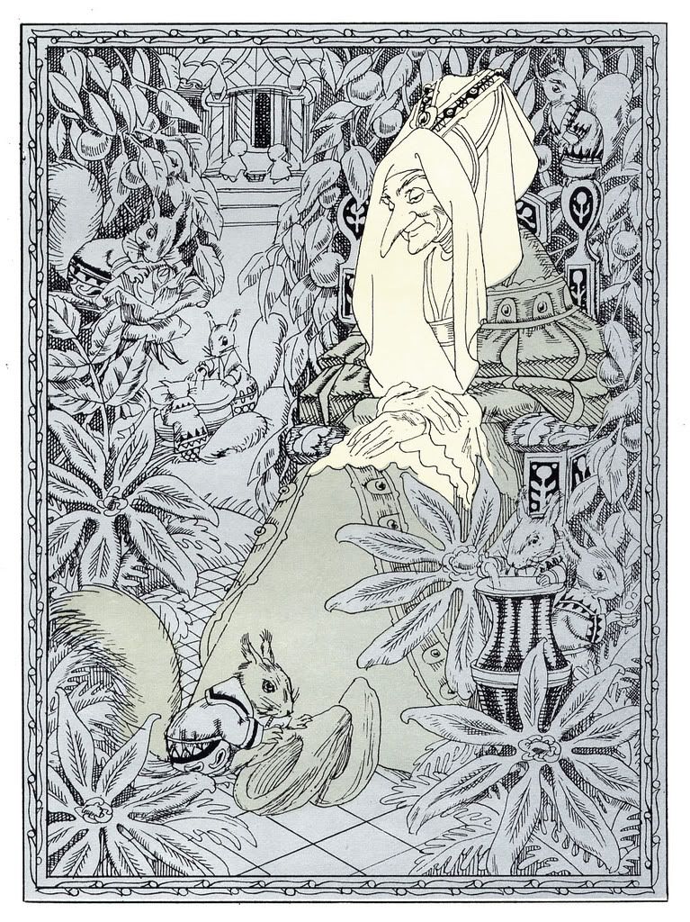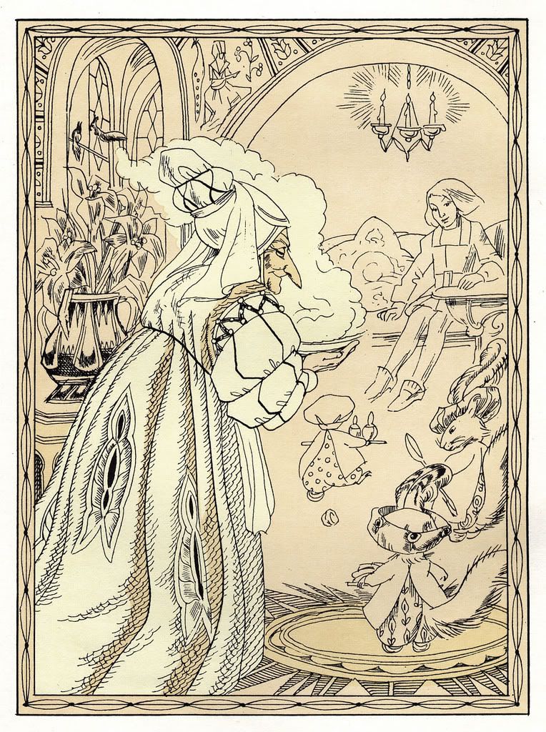Иллюстрации художницы Левандовской к "Карлику Носу" здесь уже показывали. Я позволю себе ещё несколько выложить. Просто интересная деталь: на каждой иллюстрации у колдуньи новый головной убор.