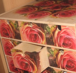 Вот мой дебют: а еще плюс этого ящика состоит в том, что если его перевернуть и ящики вставить с другой стороны, можно создать еще один новый рисунок. Вот пойду сегодня охотиться на салфетки 9розы были из старого запаса) |