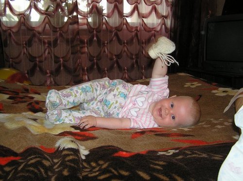 сама писать совсем не успеваю. спим плохо, самостоятельно играть не хотим, может все-таки зубы, а может еще что. ночью уже просыпаемся не каждые два часа, а каждый час. поэтому спим опять вместе. вроде и не устаю, но ничего не успеваю теперь совсем. два дня едим кашу, хотя это я громко сказала - что едим, что-то нам не нравится. (начали с кукурузной). остально все без изменений. такие все детки милые, загляденье просто! надо фоток больше!я тож свое чудо выложу. это я хотела сфоткать, как она сидит... |