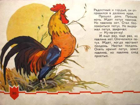 "Петух и павлин", калымыцкие сказки. Элиста, 1965г., Художник И. Харсекин |