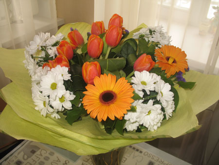 Ну... у нас это бывает не очень часто.. но вот один из моих любимых букетов - подарен на рождение младшей дочки. фотка из НИИАГ им Отта - в "фирменной" вазочке