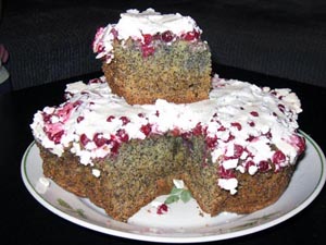 А я сегодня испекла маковый пирог с брусникой