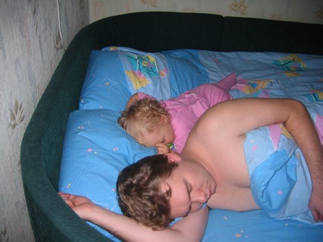 а вторая фотка - идилия семейная папа спит и дочка спит только мамы не хватает |