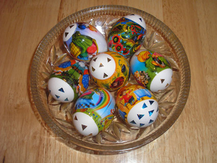 Ой, красота! А я крашу просто луковой шелухой. Так яйца вкуснее ИМХО.