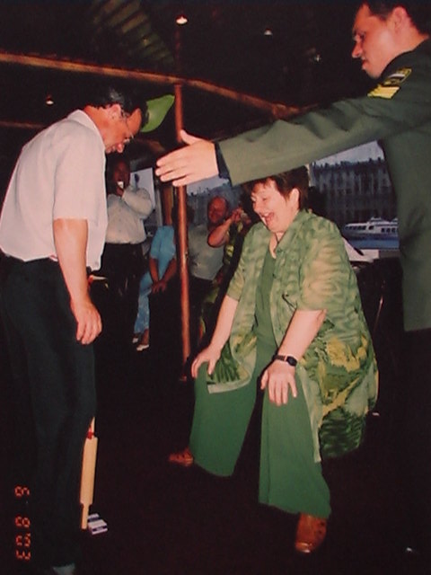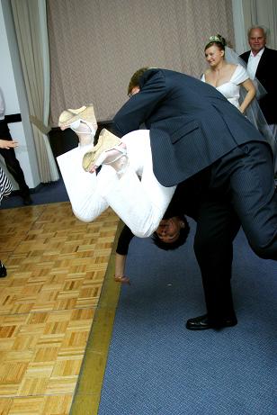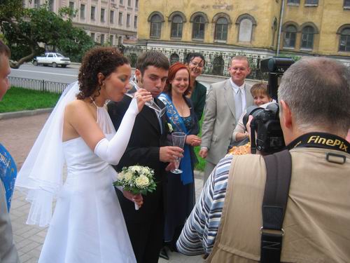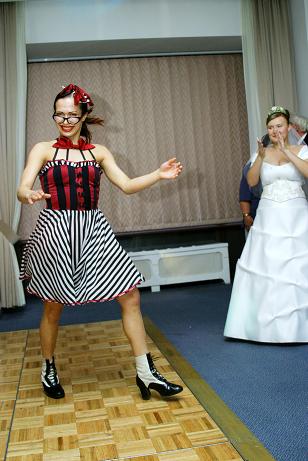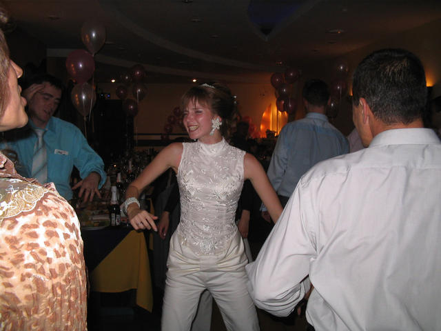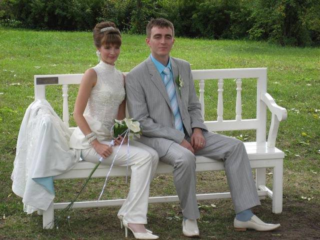 Этот костюм шили по ее эскизу. Там еще шлейф был красивый, расшитый биссером. Она его просто сняла, чтобы танцевать удобнее было, а вообще это выглядело так: