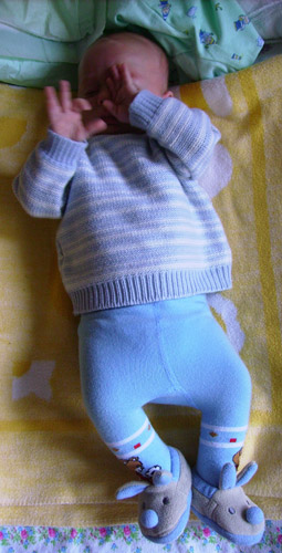 в пинетках -зайцах Артем почему-то постеснялся фотаться...ну да, мужики же не танцуют несолидно в тапочках-зайчиках по дому рассекать Зато голяком - был рад ![]() |